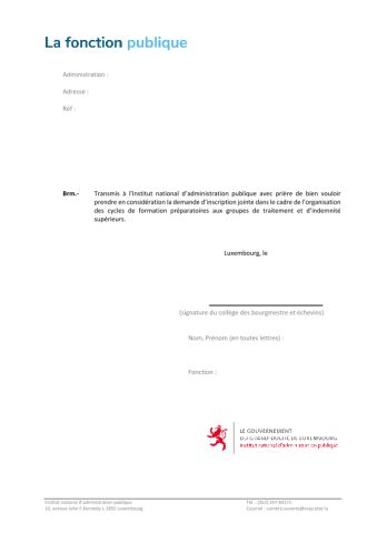 Fiche d'inscription au cycle de formation préparatoire au groupe de traitement et d’indemnité supérieur - secteur communal